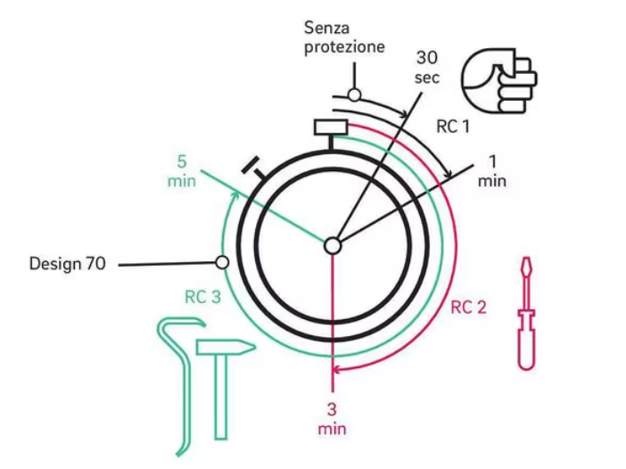 Le finestre con la classe di resistenza RC1 offrono una bassa protezione antieffrazione e possono quindi essere forzate in un tempo relativamente breve. Le classi di resistenza più alte, invece, richiedono molto più tempo e, soprattutto, strumenti.